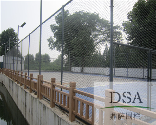 预埋:先挖好基坑,然后将立柱放入基坑中浇筑混凝土,待混凝土凝固好后再安装围网。